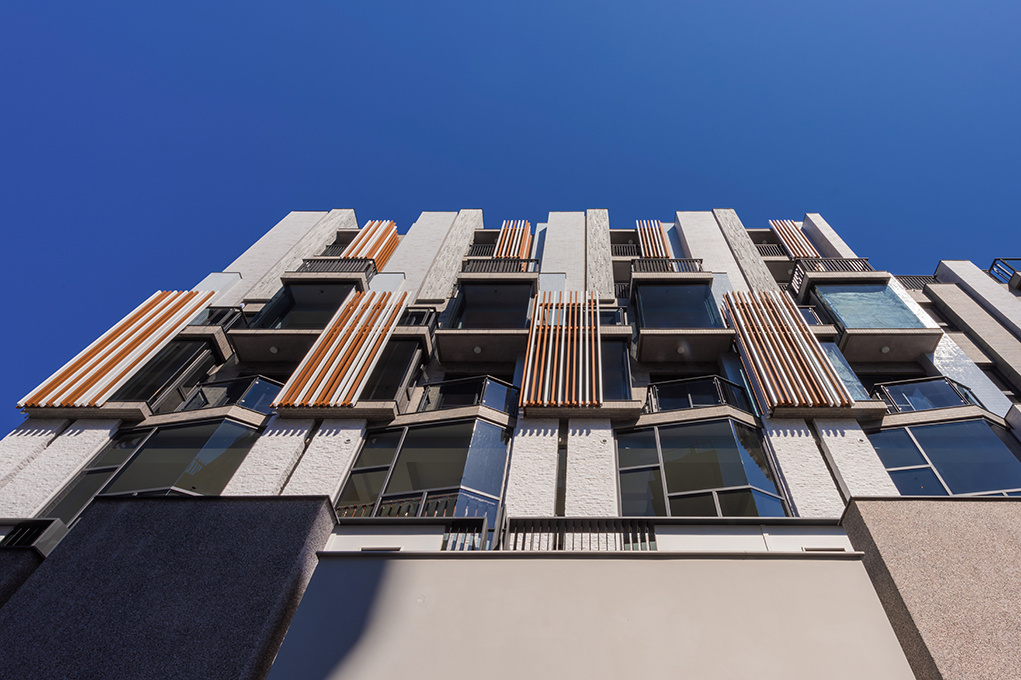 在城市的節奏中,這座建築如同一組洶湧奔騰的音符,以豐富的材質層層堆疊、綻放出垂直的律動。線條宛如指數曲線般破勢而上,每一道立面都在訴說一種無法抑制的渴望與騰升。它不只是建築,更像一場蓄勢待發的衝刺,在天光下綻放出無限可能的姿態,如同夢想破土而出,直上雲霄。